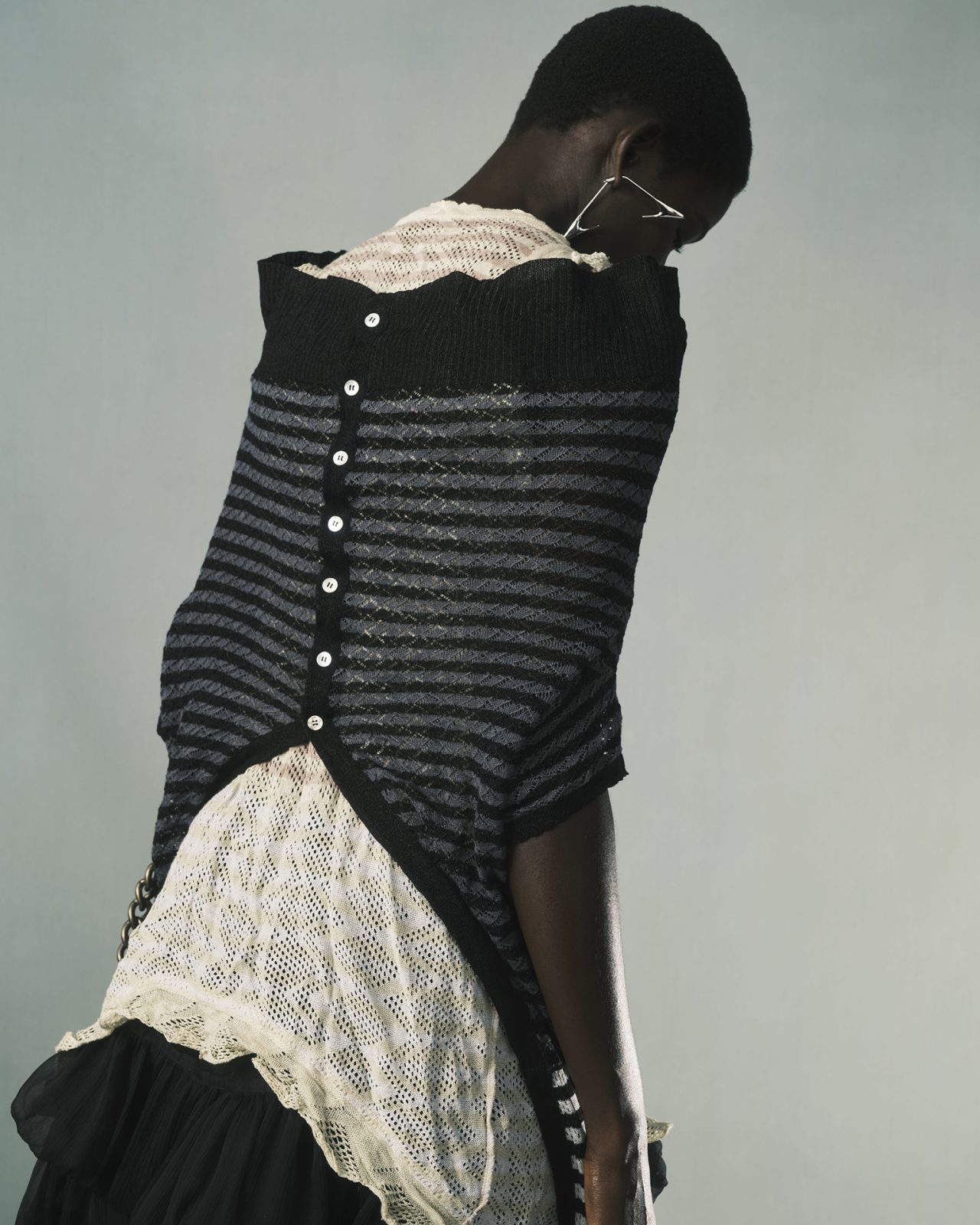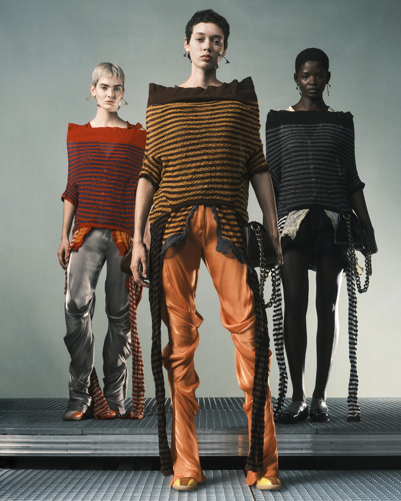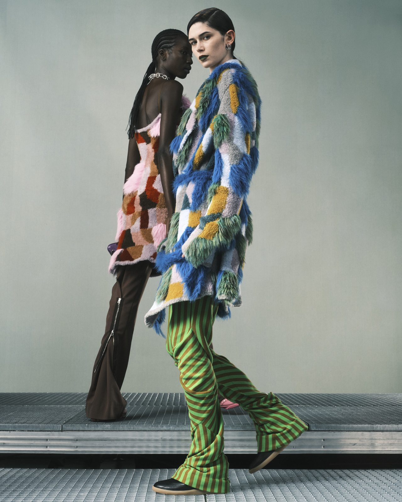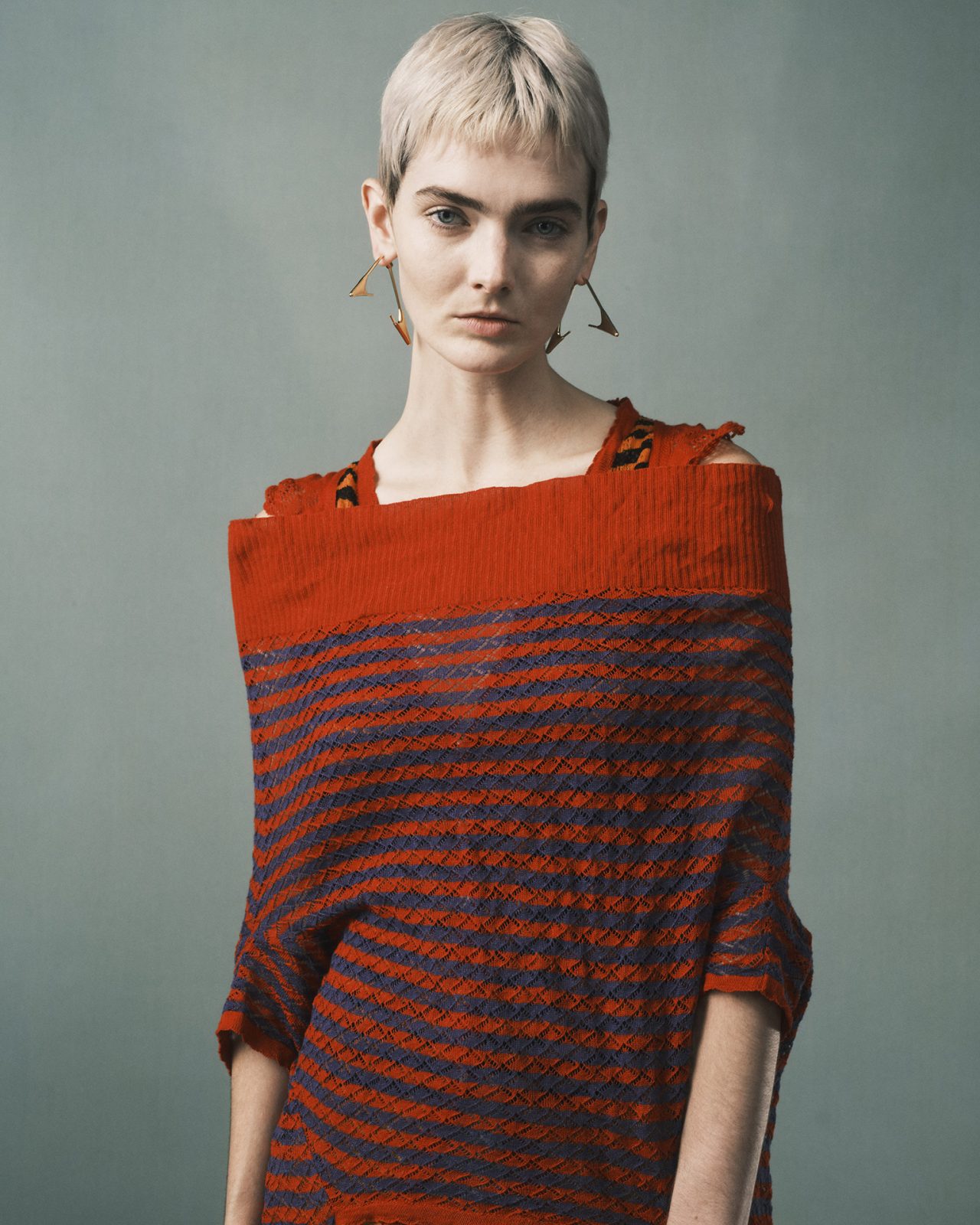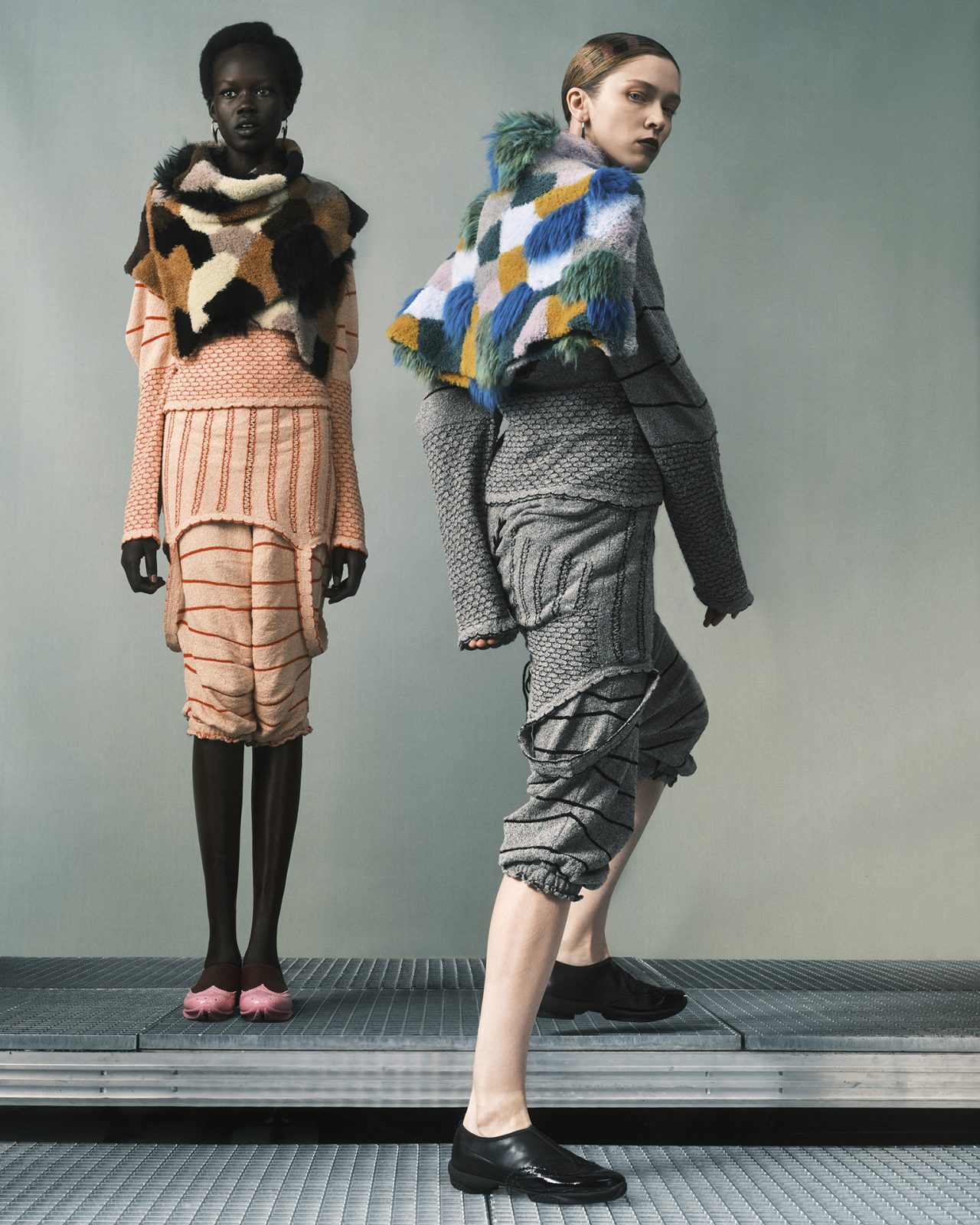D:いつも Kiko がやっていることを観察しながらも、自分たちがその通りにやれないことを痛感している。だからここで名前を挙げたいのは、川久保玲や Miuccia Prada (ミウッチャ・プラダ) のような洗練されたインディペンデントな女性デザイナー。不満をアピールすることなく、どうやって不満を伝えるのか。女性だけが絶妙なバランス感覚を求められる中、彼女がどうやって偉業を成し遂げてきたのか。今はそれにもっとも興味があります。