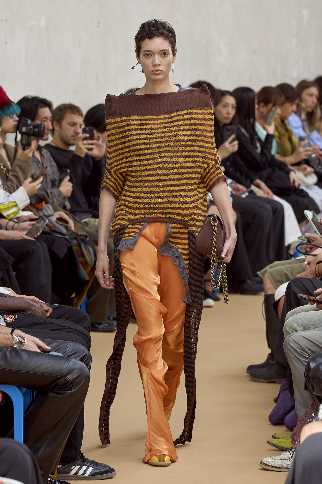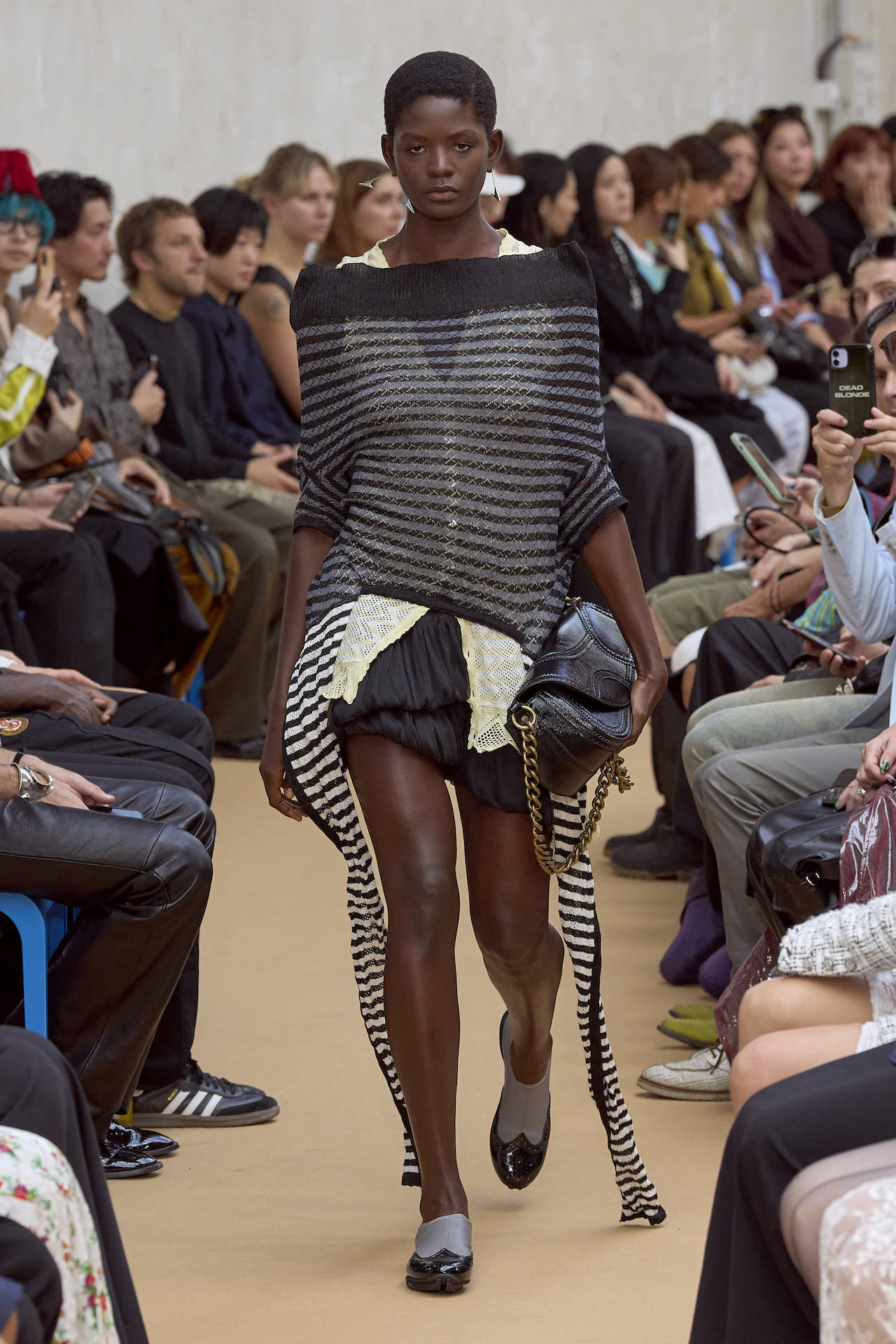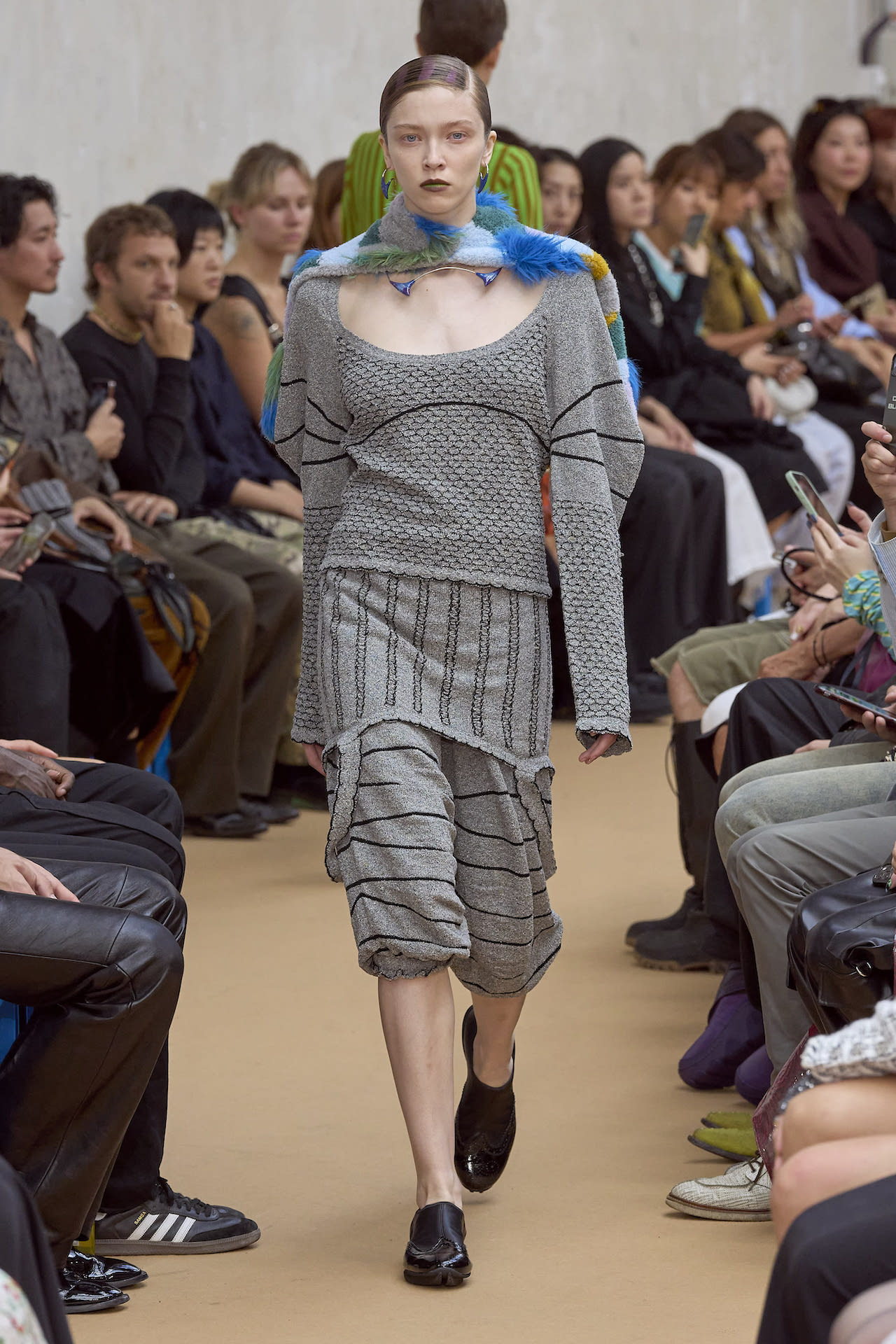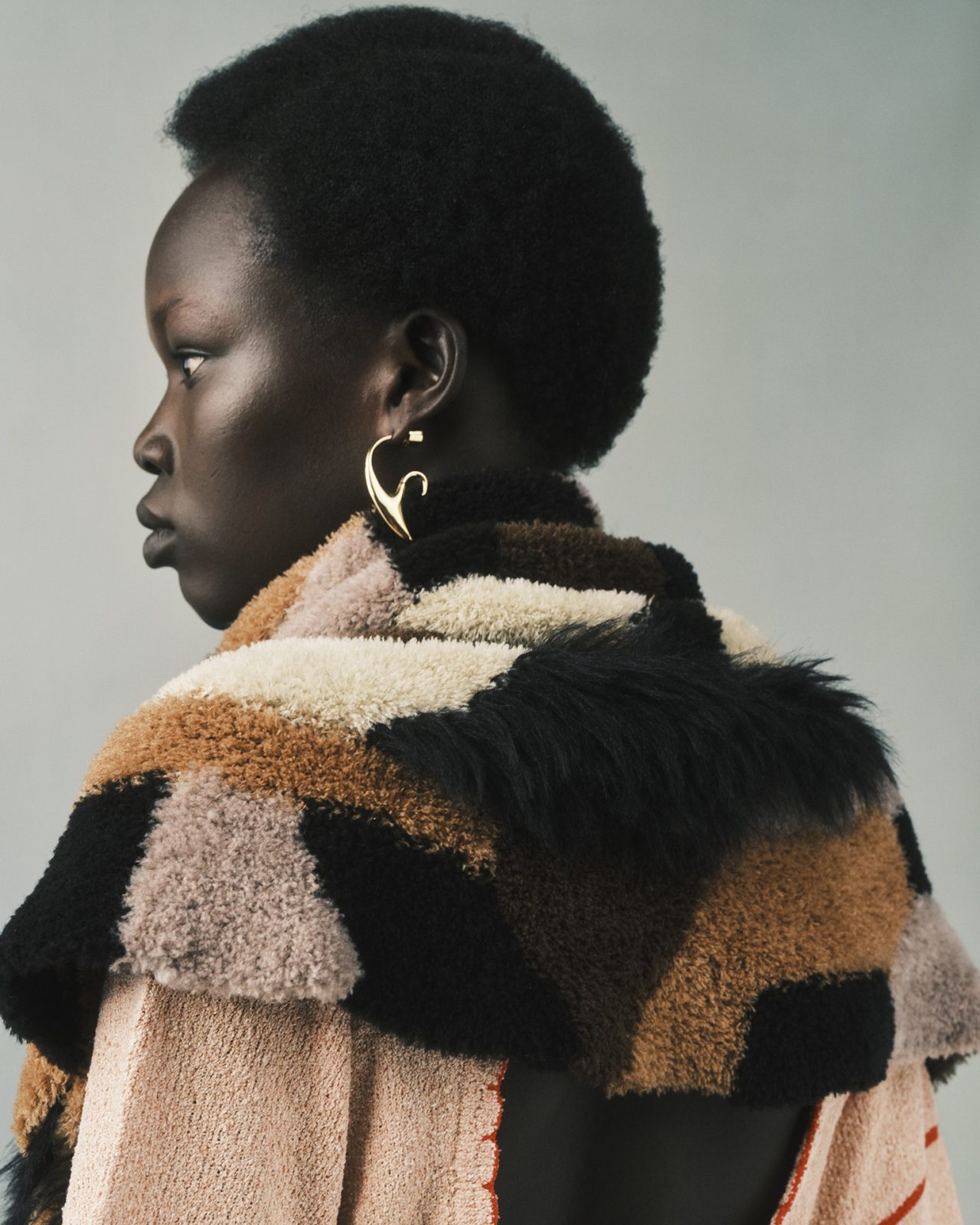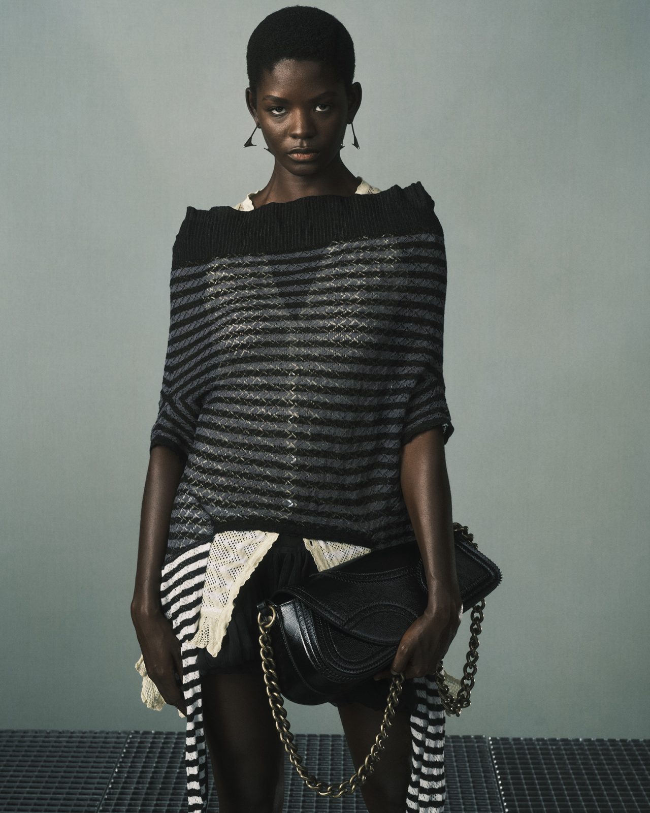 D:最近では、参照元と変わらない見た目のデザインも多い。また、私自身も「このデザインはどこから来たのか?」と質問される機会が増えました。ただ、それを正確に伝えることは必ずしも私の仕事ではない気がします。もし私が誰かに、「ええっと、ムードは1940年代で、肩のラインは1980年代を引用していて」と説明したとする。しかし、それはあくまで今この時代に着るためのもの。つまり、リファレンスはリファレンスでしかなく、「それをいま着る」という発想が重要です。それが私にとっては新しさを生み出す方法論であり、デザインの軌跡のようなものだと捉えています。