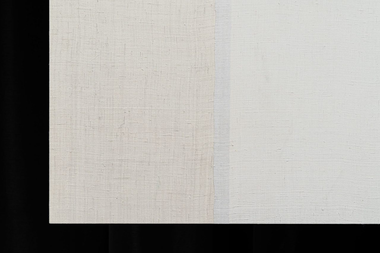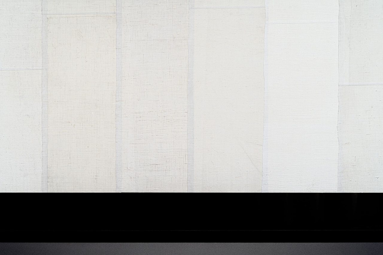 吉田真一郎の作品《白》は、19世紀、江戸時代の終わり頃から明治時代のはじめまでに織られた大麻と苧麻の布で構成されている。