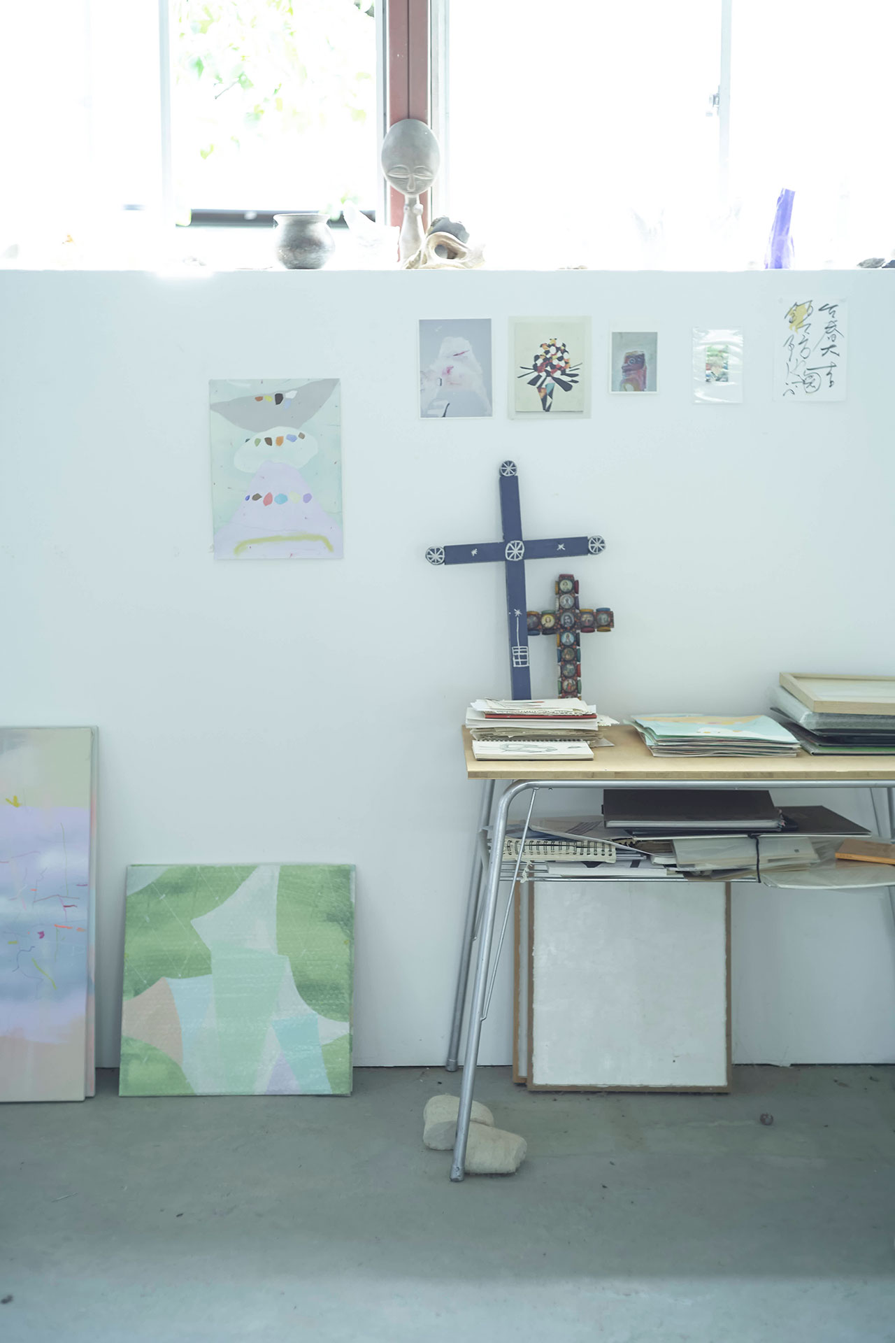 純一名義にしていたのは、大学時代に同じ名前の人が数人いたからという理由だったので、絵描きになるときに本名に戻しました。2004年に、インテリアデザイナーの木村二郎さんが末期の膵臓癌だとわかったタイミングで、「人生は短いんだから、好きなことをやるべきだ。デザインを辞めて絵描きになった方がいい」と言われたんです。デザインを続けていくモチベーションがなくなっていたし、その月にデザイン事務所を畳みました。それに、以前は手描きで全部自分で作っていたけれど、コンピューターを使うのが当たり前になって、スキル関係なくみんなのデザインが平均化していくように思えたことも大きかったです。ちょうどその頃、世の中の動きとしても、同世代の画家が食べられるようになっている時期だったんですよね。それで、よし、こっちだと。自分の中で1点突破できる取り柄と言えるものは、絵しかなかったので。振り返ってみると、デザイナーをやってたときも1室をアトリエにして、ずっと絵は描いていて、仕事のストレス発散をしていたので、誰かのためではなく、自分のために何かやりたかったんだと思います。