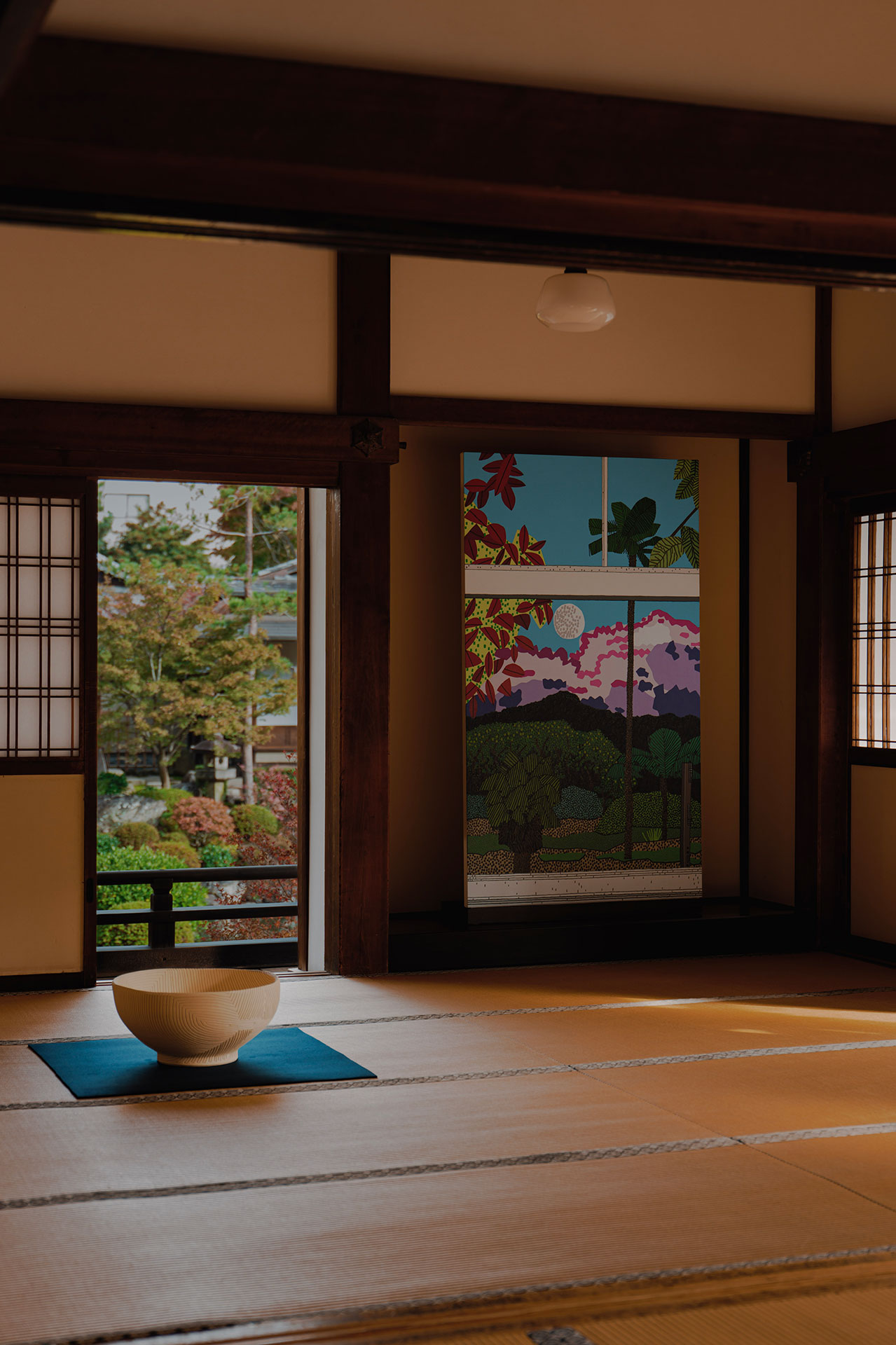 —ジョナスさんによる2Dの作品とシオさんの3D作品の対比が寺院建築の中で際立っていたように感じます。室内から見える京都でも有数の名庭園と言われている秋のお庭の光景も借景となって、見事にインスタレーションに活かされていました。