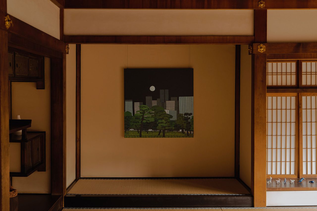 ジョナス:今回設置した作品は両足院から直接的に着想を得て制作されたのではありませんが、作品は自分のものも、そしてシオの作品もそれぞれ寺院の空間に置かれることでよりストーリー性が出てきたと思います。特に絵画の中の線が、(日本家屋特有の畳や障子、柱など)部屋のグリッドと呼応するようにも見えてきました。