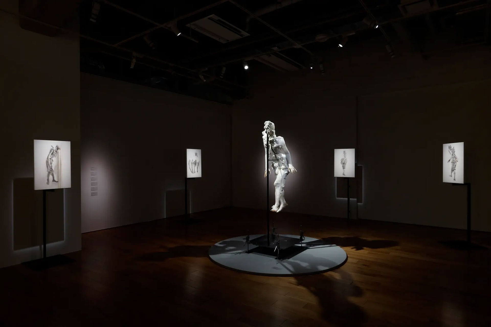だから今回の個展を引き受けるにあたり、WHAT MUSEUM 内の企画チームに加えて、東京藝術大学の宮本武典さんを招き、彼に展示構成を依頼しようと思いました。彼はキャリアの初期に「舟越桂 自分の顔に語る 他人の顔に聴く」(2007年) や「曺徳鉉 Flashback」(2009年)、「向井山朋子 夜想曲」(2011年) などの印象的な展覧会を企画してきた。繊細に物語を紡ぎ出す特別な才能と、言葉に対する感受性、そしてその手つきに注目し続けていたからです。昨今は学芸員のみならず、アーティストや批評家によるキュレーションも目にしますが、その行為が作家性を帯びる中で、私は「宮本武典から見た私」を徹底的に肯定し、その状況を楽しむことを自分に言い聞かせました。
