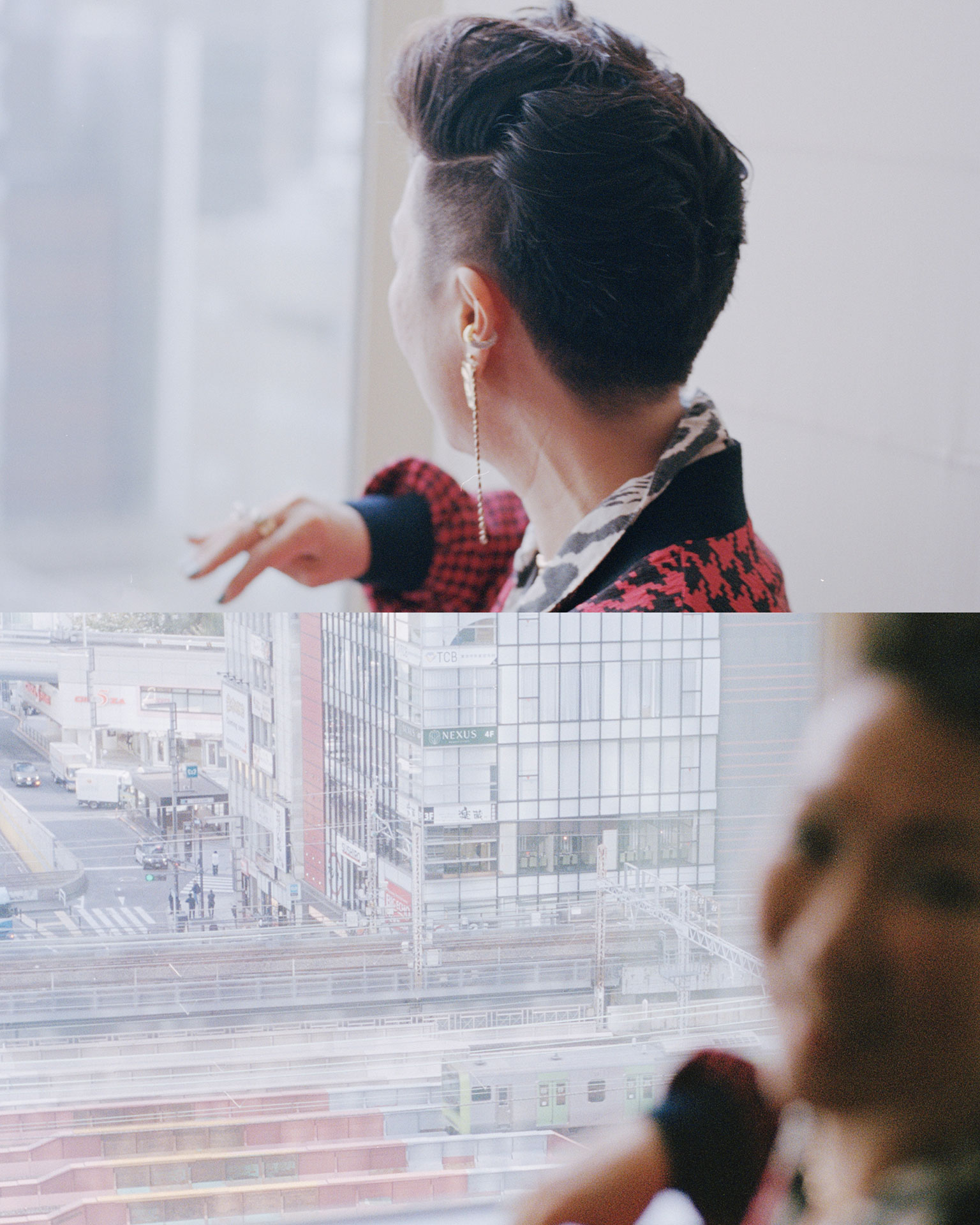 それはたぶん、長期間海外に住んでいて、今もほとんど仕事でしか滞在しない東京なので、まだまだ新鮮に感じる街並みはたくさんあるからでしょうか。でも、生粋の日本人で、日本語もカルチャーも分かる。完全な外側でも、完全な内側でもない。その距離感がそのまま画に出ている気がします。今回は、いわゆる「ザ・東京」みたいな象徴的なショットは、渋谷の駅とスクランブル交差点を一瞬映したくらいで、ほとんど使っていないんですよね。あとは窓越しの景色とか、街の断片とか、あくまで東京をキャラクターの一人として撮れないものかと。1枚のフレームの中に実は何万人も暮らしている、そのエネルギーを感じられる画にしたくて。たとえば富士山もドンって撮らずに、人の生活の中に溶け込ませる。そういう撮り方を意識していましたね。