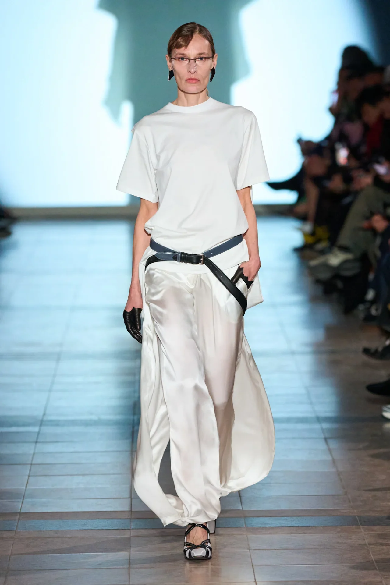 はい。今回のショーで使用した影は、事前にアントワープで撮影したものです。最初はモデルの動きに沿って影の像も一致しているのですが、次第に形が変化し、違和感を帯びていきます。そうすることで、「像をコントロールする」という感覚を表現しました。