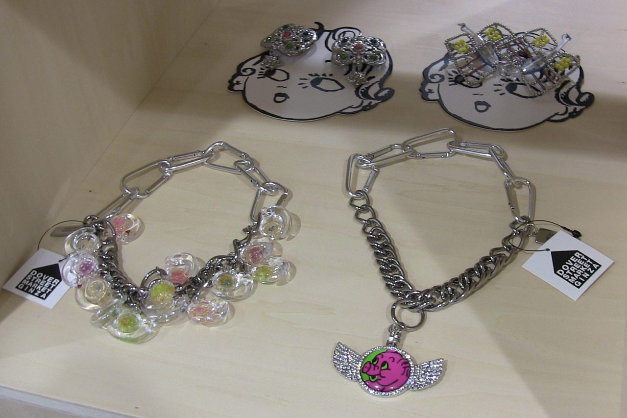 Emma: 私にとって、人の目を引くものって、どこか知性があると感じていて。そしてそこにユーモアが加わることで、より強く惹かれる。ブランドを始めた頃は、その要素は今ほど強くなかったのですが、ブランドが成長するにつれて、ユーモアへの意識がすごく強くなっていきました。キャラクターのモチーフだけじゃなくて、スタイリングの中にもその感覚を取り入れるようになり、今ではコレクションのストーリーを考えるうえで非常に大事な部分を担っています。今回日本を訪れて、そのユーモアの感覚が自然と人々との共感を生んでいるんだと、改めて感じました。