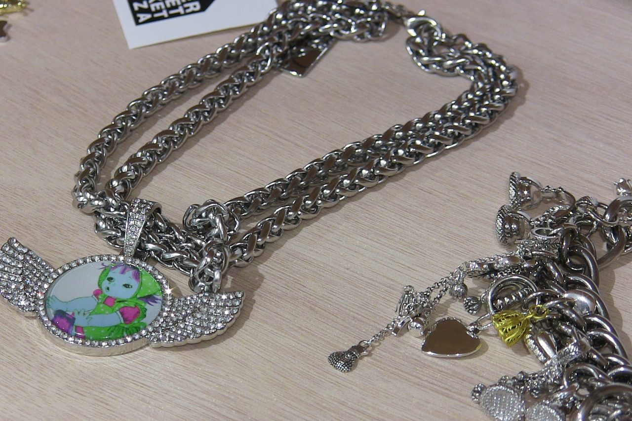 Emma: そんな感じでアイテムの展開は、すごく計画的に生まれたというよりは、個人的な感情で自然に広がっていきました。ネックレスが誕生したのも、初期のコレクションで「馬上体操」をテーマに製作していたときに、スタジオに馬具の金具がたくさんあったことがきっかけでした。そこから、「これ、ネックレスにしたらかっこいいんじゃない?」というふとした会話が発端となっています。フリースのアイテムも、Laura がいつも着ていたヴィンテージのフリースを着想源に作り始めました。自分たちの身近なユニフォームから Chopova Lowena のアイテムは生まれてきたのです。