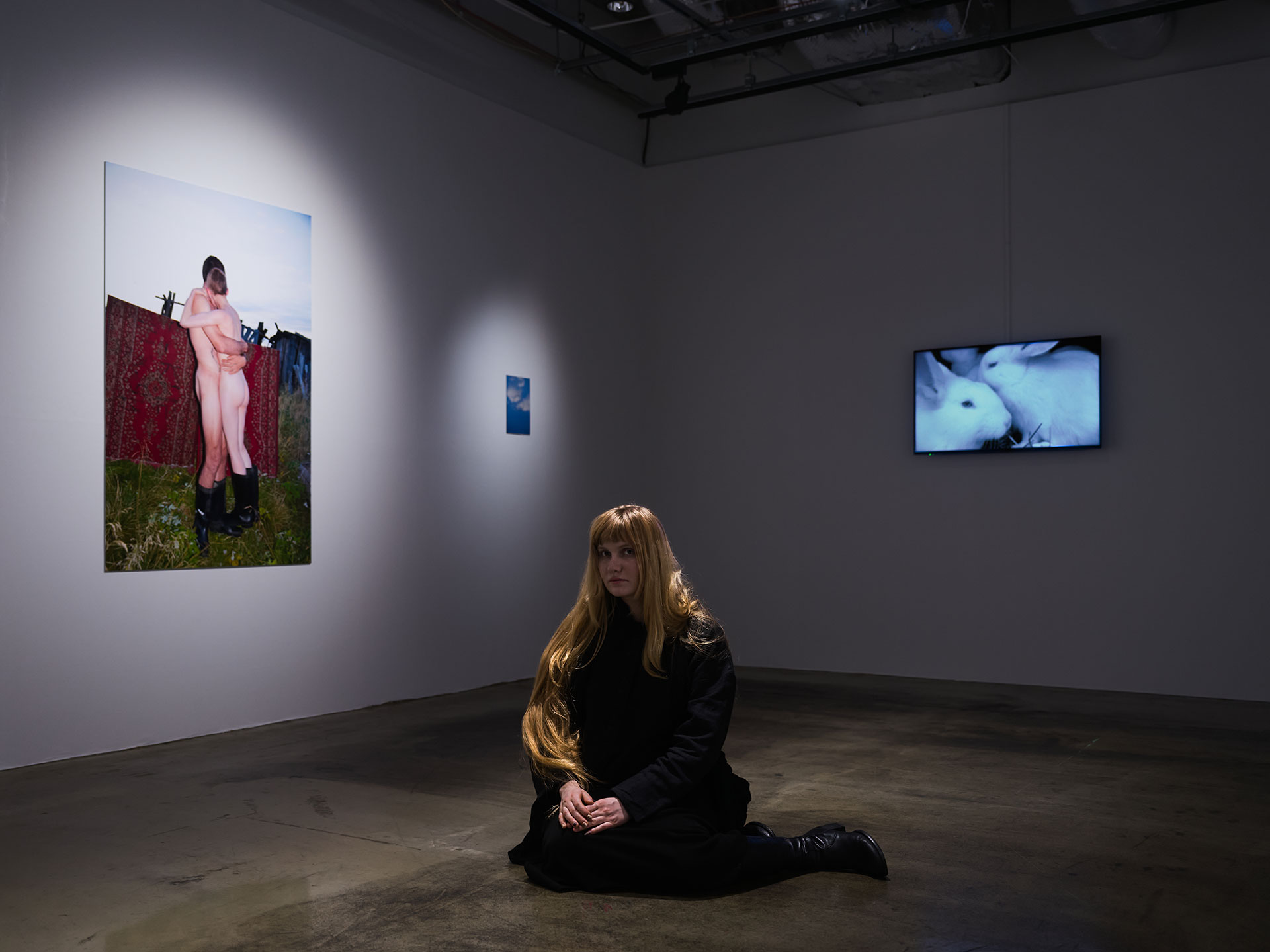 ―今回の展示では、馬のクローズアップや指を吸う生まれたての子犬の穏やかなイメージが合間に挟まれ、ウサギの映像「Funny Bunnies」は、展示室の中央で淡々と時間を刻みます。ロシュコワさんにとって「動物」はどのような存在ですか? 人間と動物の間に境界線はあるのでしょうか?