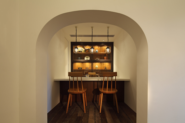 白くて光が溢れるモダニズムの空間が好きなのは、子どもの頃の影響でしょうね。そういう世界を大切にしたいなと思っています。店舗デザインにも、自分が生まれ育った家の様子を落とし込むことがあります。Soup Stock Tokyo 1号店のヴィーナスフォート店にある白い煉瓦の壁は、当時の自宅にあった壁から着想を得ていますし、PASS THE BATON 1号店の丸の内店では、青山マンションを取り壊す際に保管しておいた内装のトラバーチンを什器として使用しています。
