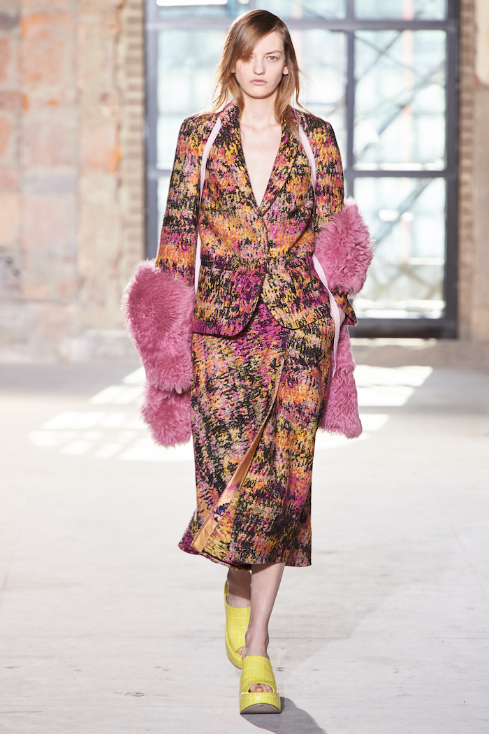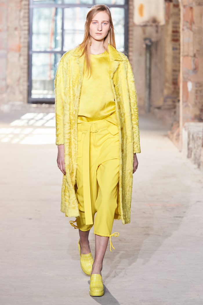 Sies Marjan 2016-17年秋冬コレクションより、印象的なカナリアイエローのドレス。モデルは Katie Moore (ケイティ・ムーア) | Photo courtesy of brand