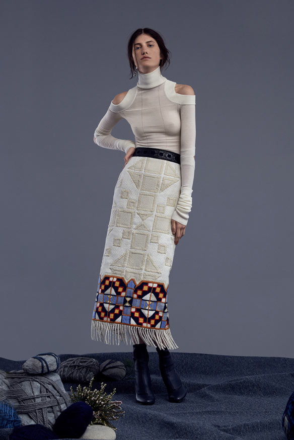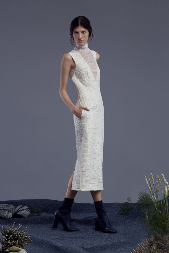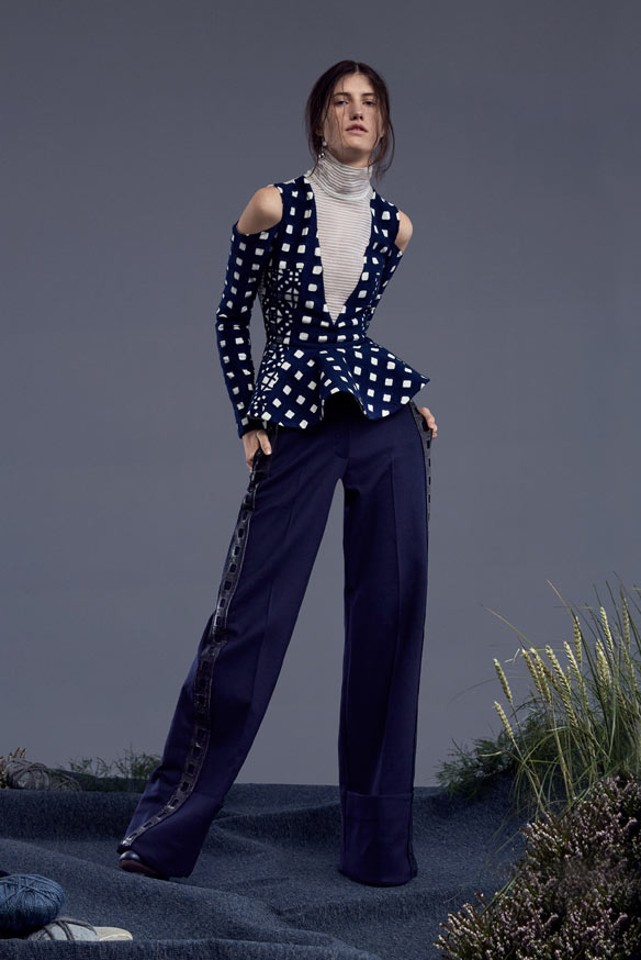 Catherine : 私たちが賞を獲得できたのは、きっと他のブランドたちとアプローチ方法が違うものだったからだと思うの。私たちの通常のコレクションと逸脱したものは作りたくなかった。だからウールを何かしらの形で取り込んでいる生地を使って、私たちの DNA や世界観と融合させることにフォーカスしてコレクションを完成させたの。他のブランドや過去のエントリーした作品はウールマーク・プライズに出品するために特別なデザイン、コンセプトを作り出して、そもそも自分たちが持つブランドの魅力を二の次にしがちだと思う。例えば、私たちの服でコットンを使用している服があれば、それをウールを使用したファブリックで代用してデザインするように考える。レースなどの繊細なパーツもウールを使ったレースを開発して工夫する。そうすることで新しいファブリックの表情がデザインに新たな魅力を加えてくれるわ。今まで一緒に仕事をしてきた素晴らしい職人がいる工場に私たちは素材であるウールを渡して、彼らと二人三脚で取り組んできた結果が実って嬉しいわ。