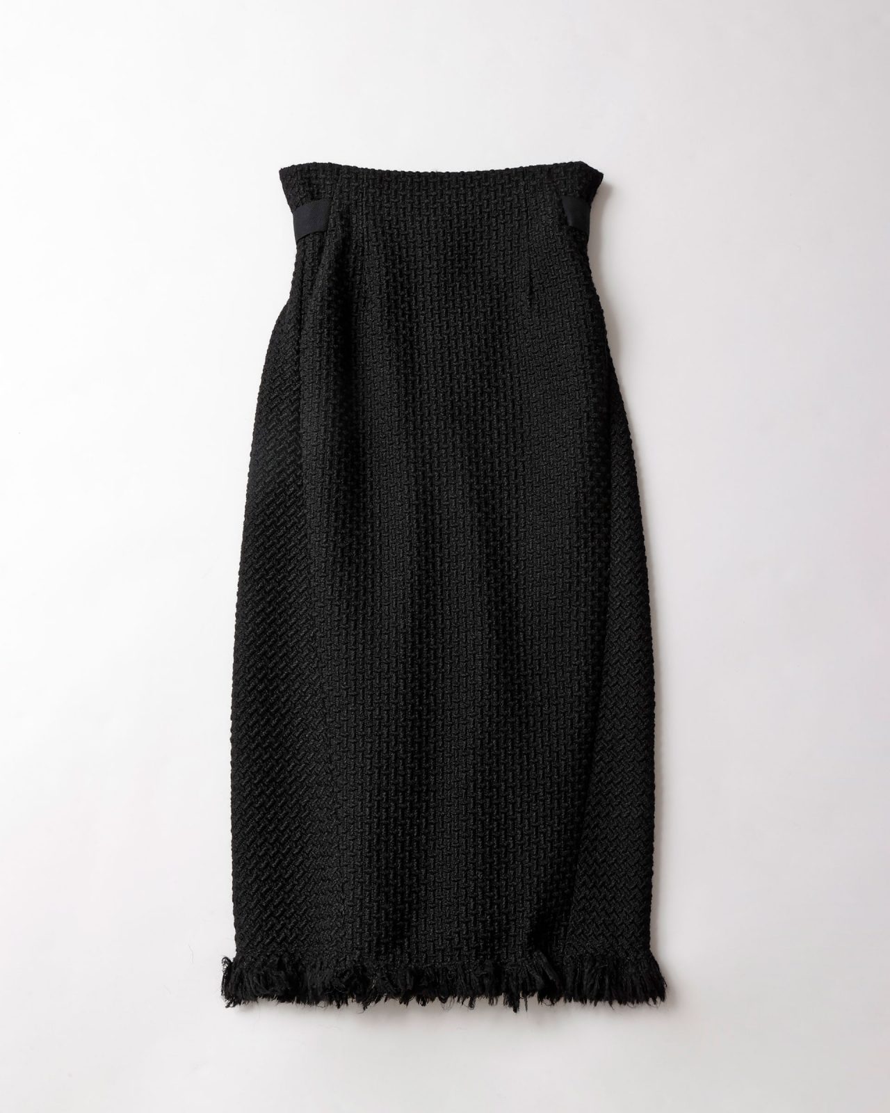 シンプルになりがちなモノトーンはフォルムで遊んで。甘いフリルをキルティングスカートと小物で引き締めれば上品なレディに変身。