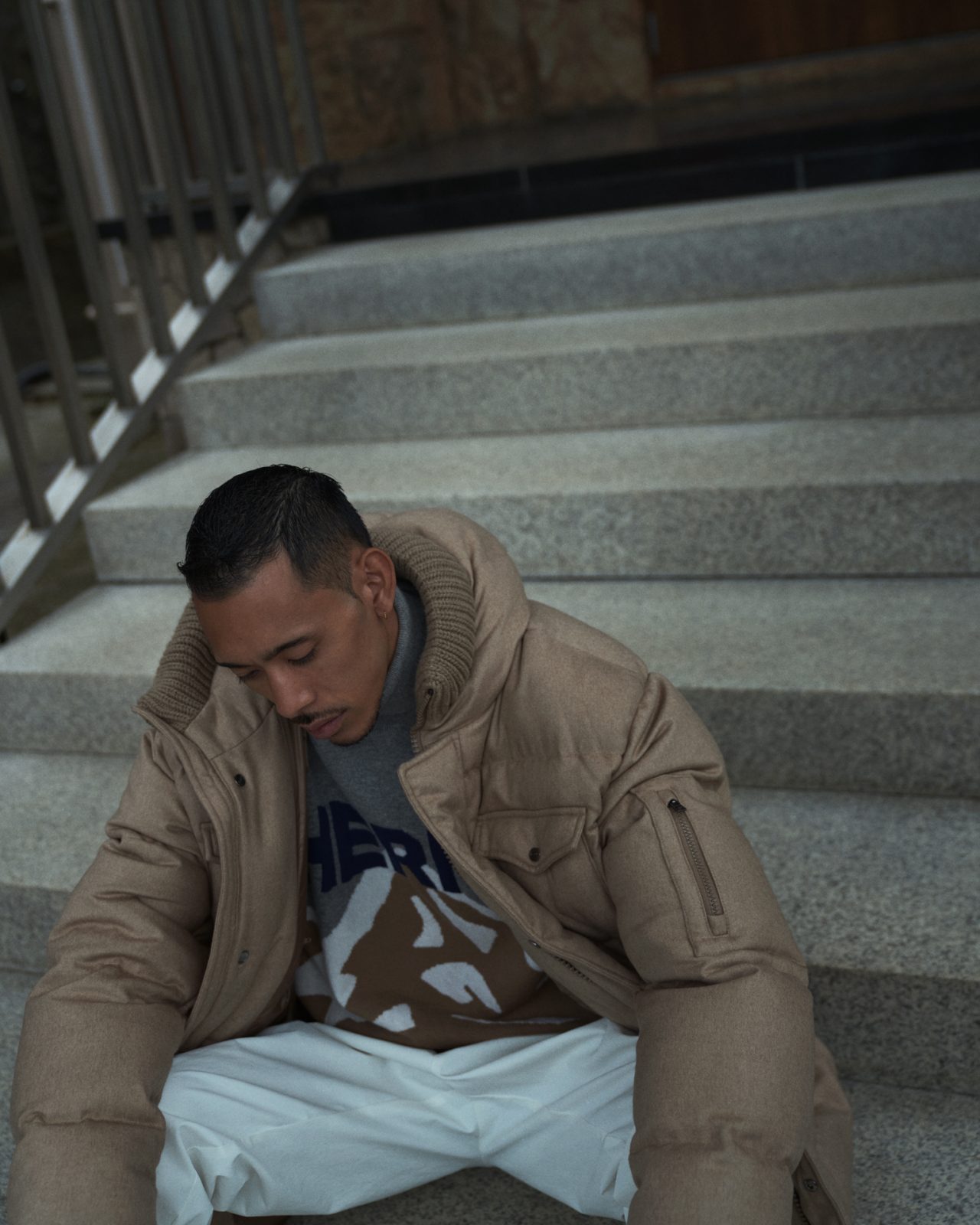 袖を通したのは、ラッパー、モデルとして活躍する IO (イオ)。アートディレクター、ヴィジュアルクリエイターなど表現者としても多彩な顔を持つ彼もまた、揺らぐことのない信念とともに新しい挑戦を続ける。ブランドのフィロソフィーと共鳴する IO が魅せた、80’sとモダンが交差する HERNO の最旬コレクション。(第2回/全4回)