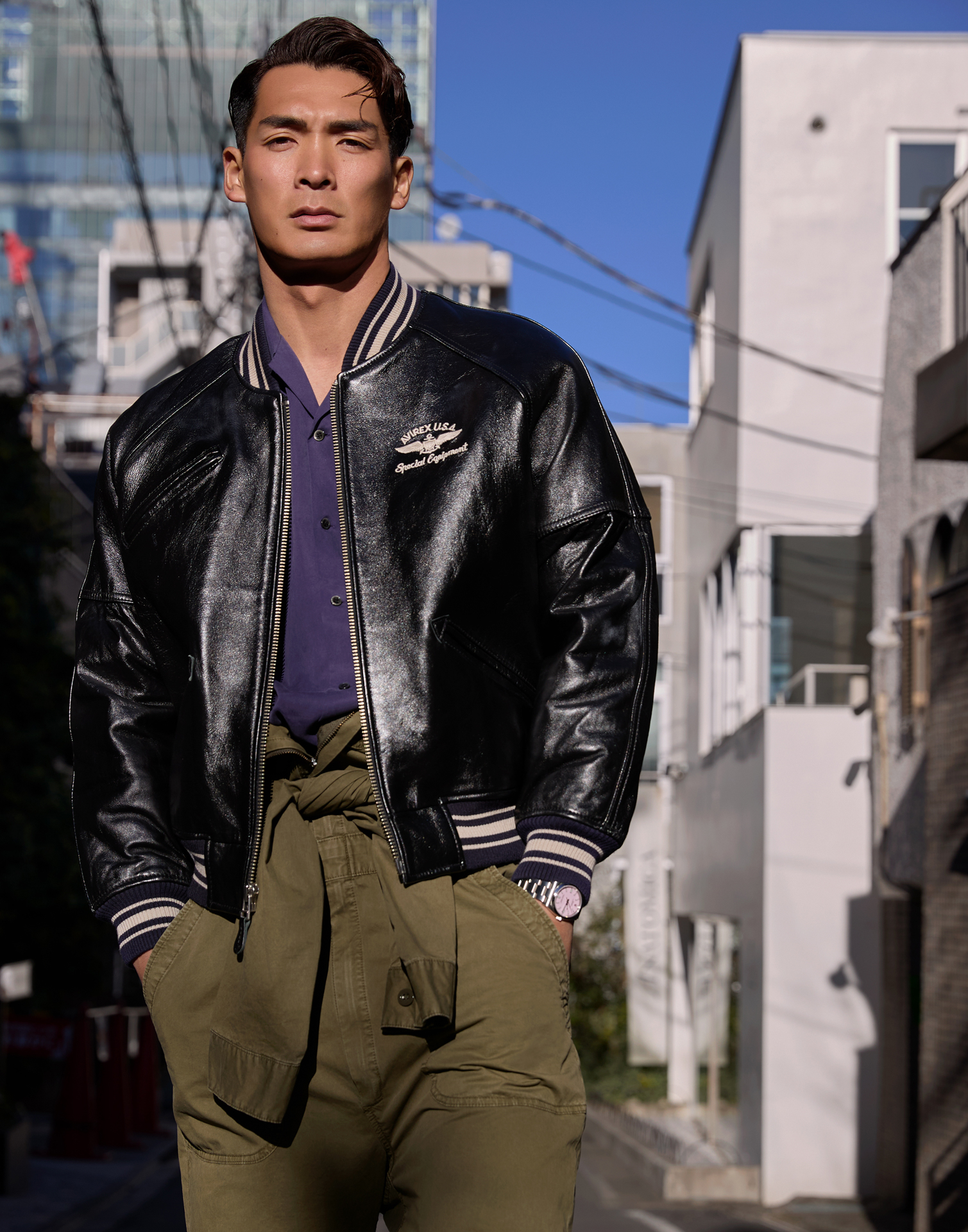 2025年、創業50周年を迎えた AVIREX。ミリタリーを起源にした機能的なデザインは、飛行家たちの思いとともに生き続けている。着こなしを披露するのは、さまざまなジャンルで活躍するアーティストや表現者たち。ファッションに関することからプライベートのことまで聞いた、ミニインタビューとともにお届けする。
