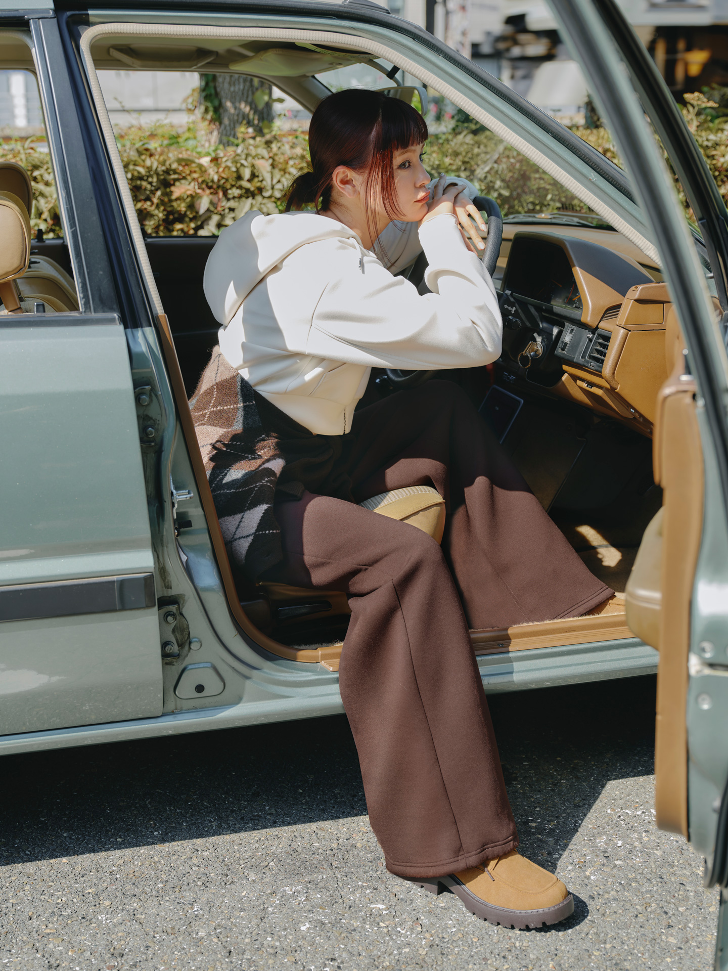 ひとりきりで過ごすドライブの時間。車内という密やかで自由な空間では、自然体のままで心地よくいられる装いがちょうどいい。軽やかで柔らかな「パフスウェット」は、そんなひとときにそっと寄り添ってくれる。日常のなかの“自分だけの特別な瞬間”こそ、計算ではなく感覚で装いたい。