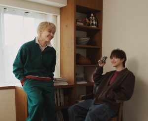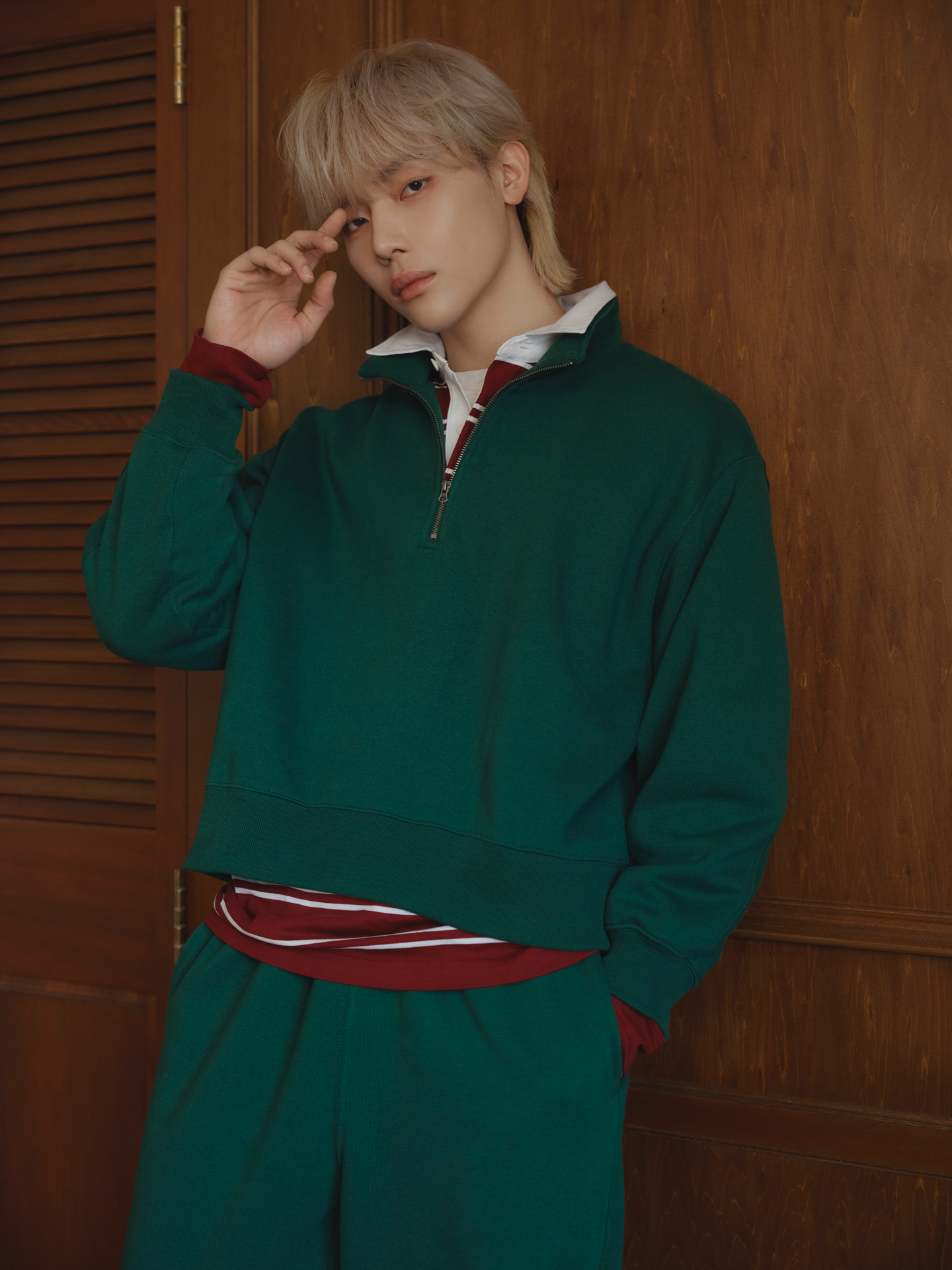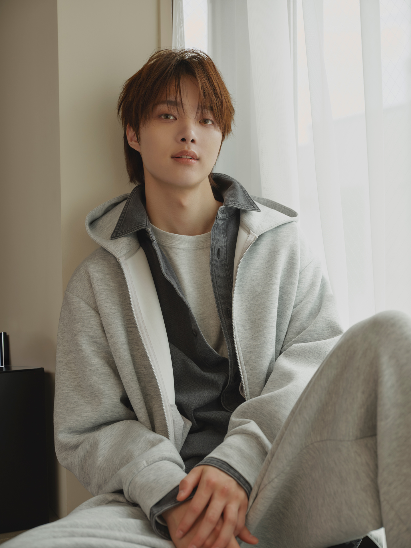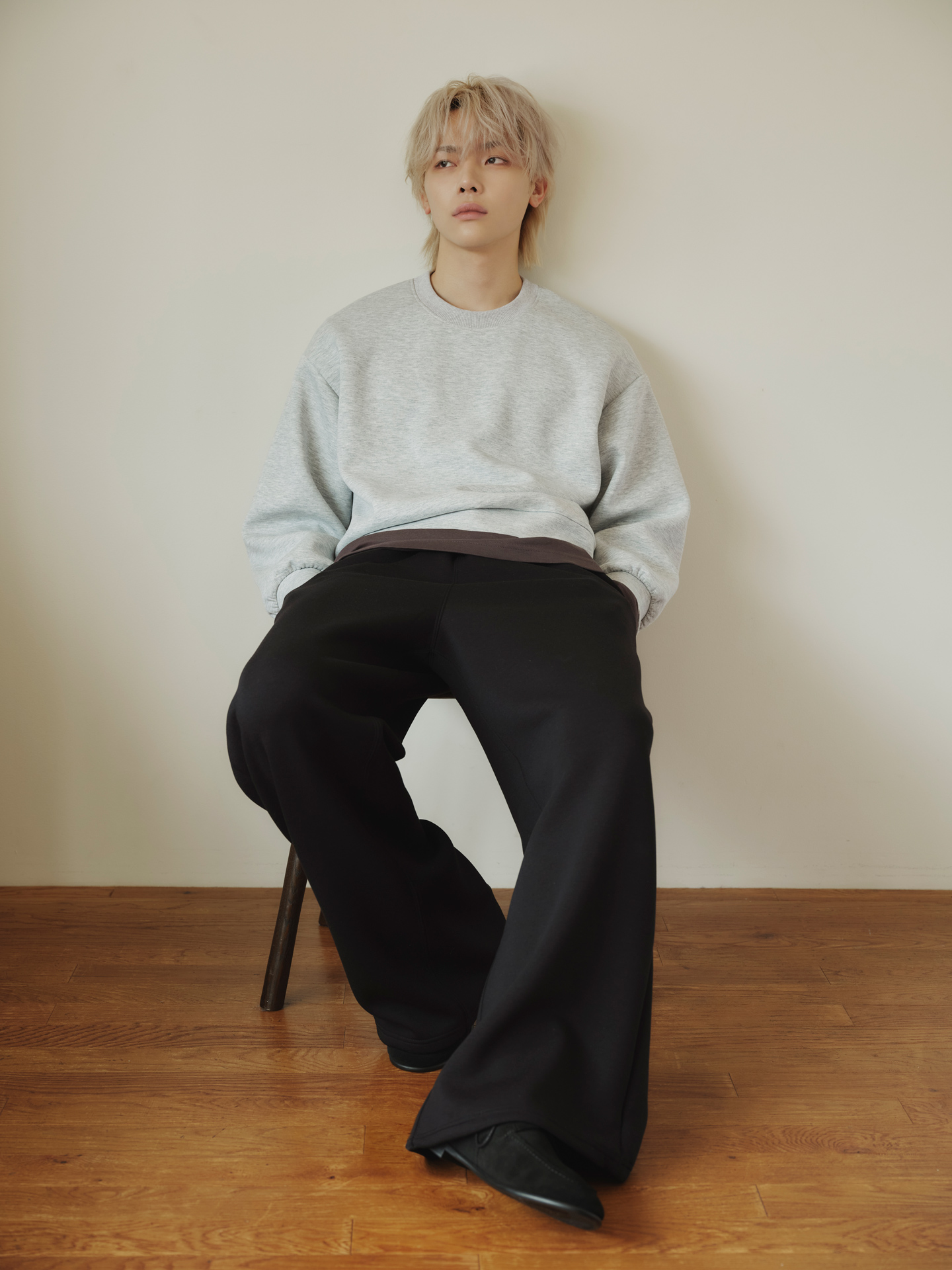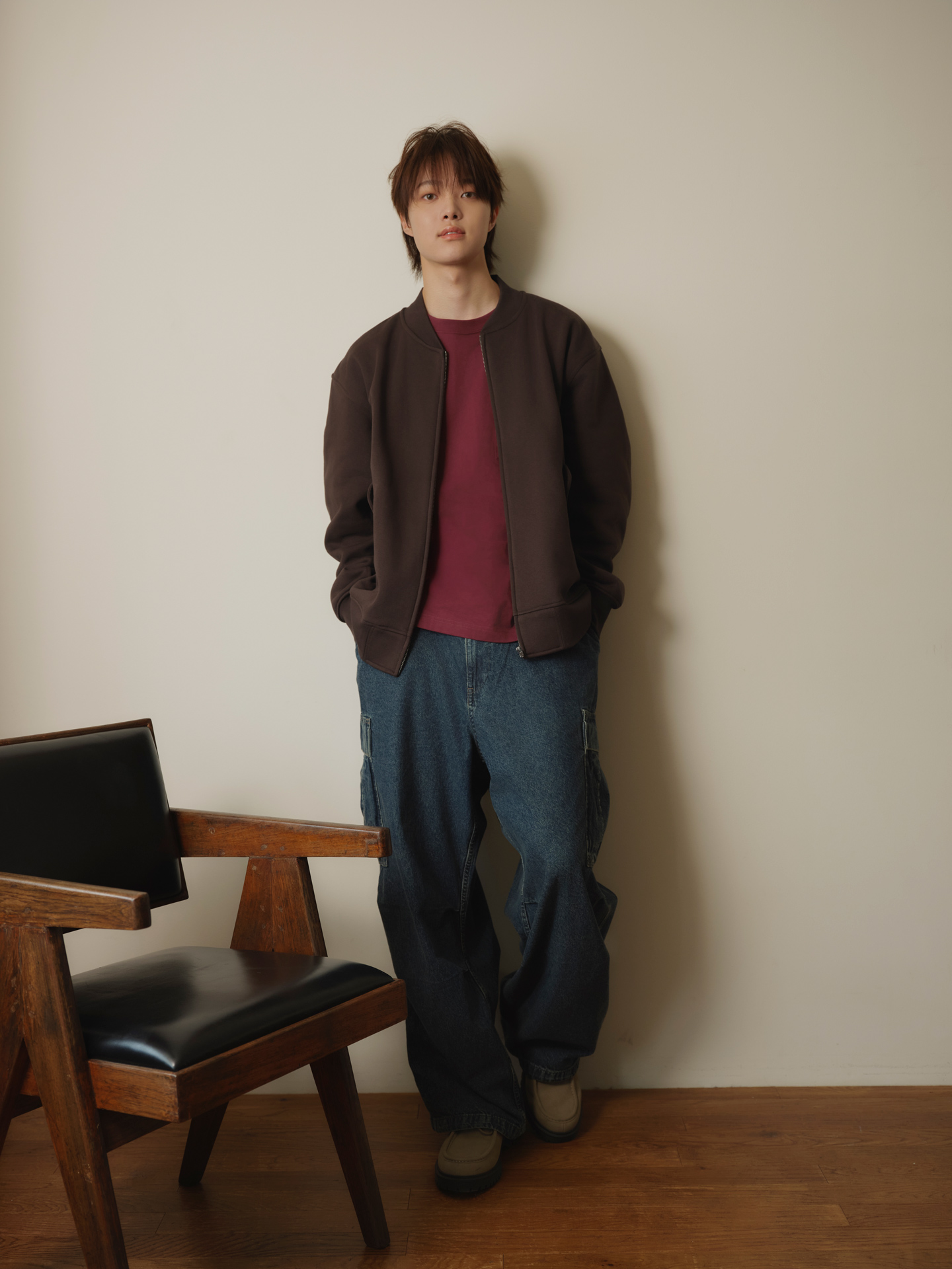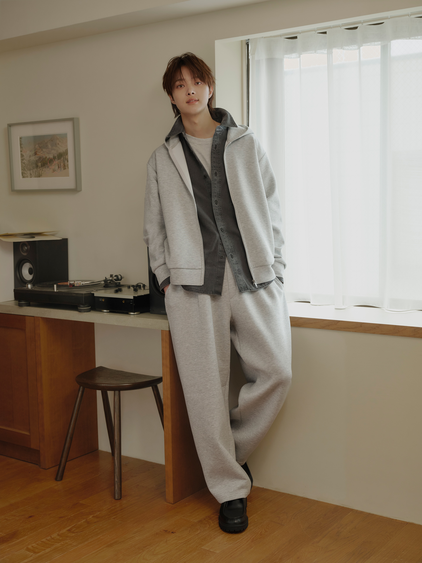 第1弾に登場するのは、日本発グローバルグループ &TEAM (エンティーム)の EJ (ウィジュ)と NICHOLAS (ニコラス)。お気に入りのレコードを流しながら、カメラを手にゆったりと過ごすひととき。決めすぎない、作りすぎない、自然体のふたりの距離感が、飾らない空気を生み出している。ほどよく肉厚な生地がつくる端正なシルエットと、落ち着いたトーンのカラーリングが魅力の「ヘビーウェイトスウェット」は、そんな穏やかな時間をさりげなく引き締めてくれる存在。