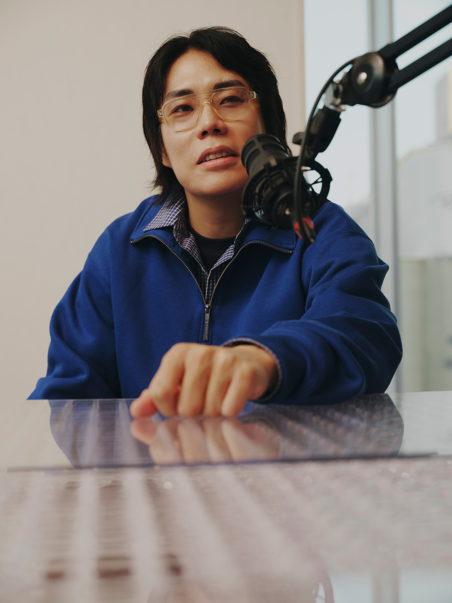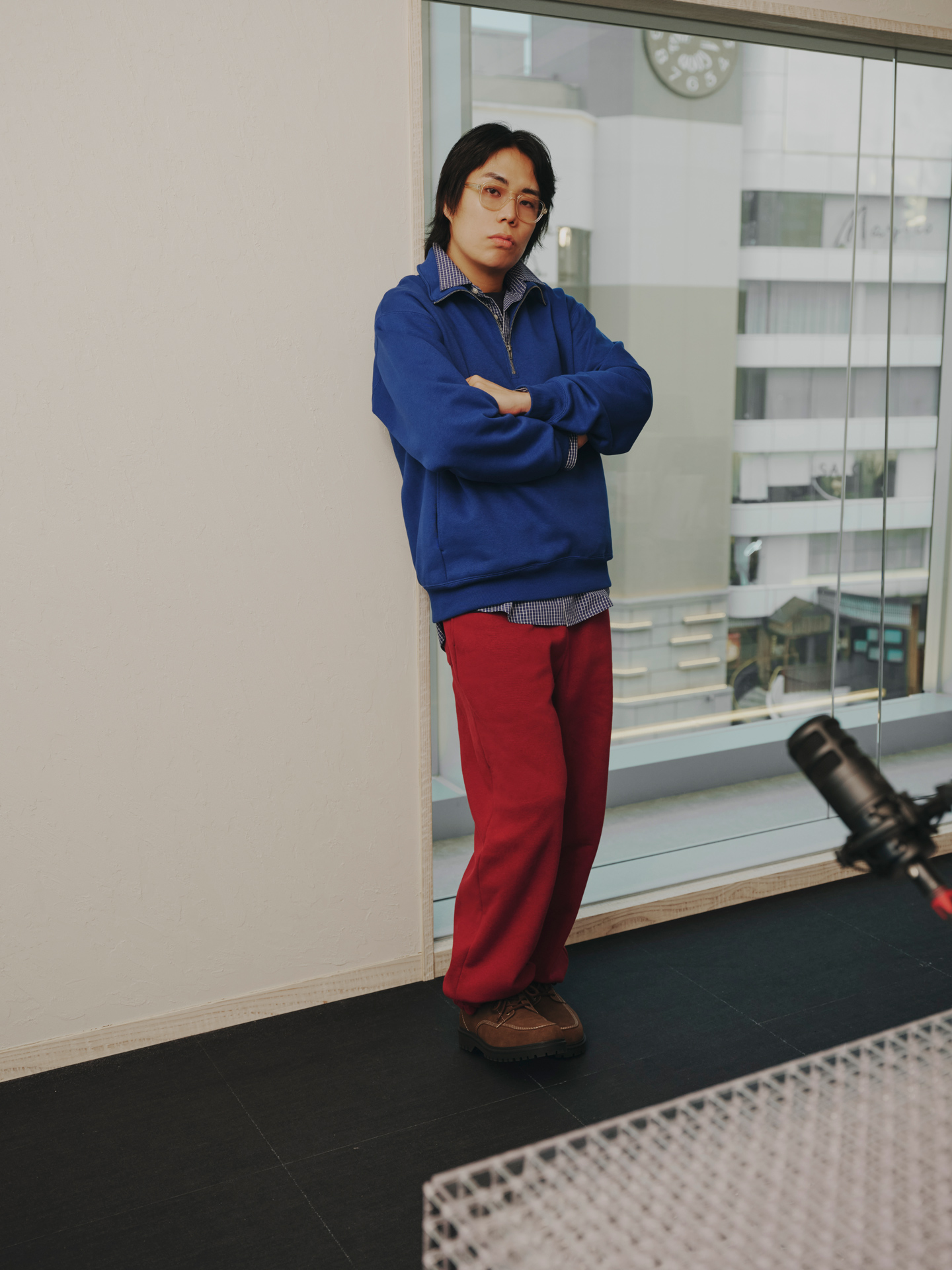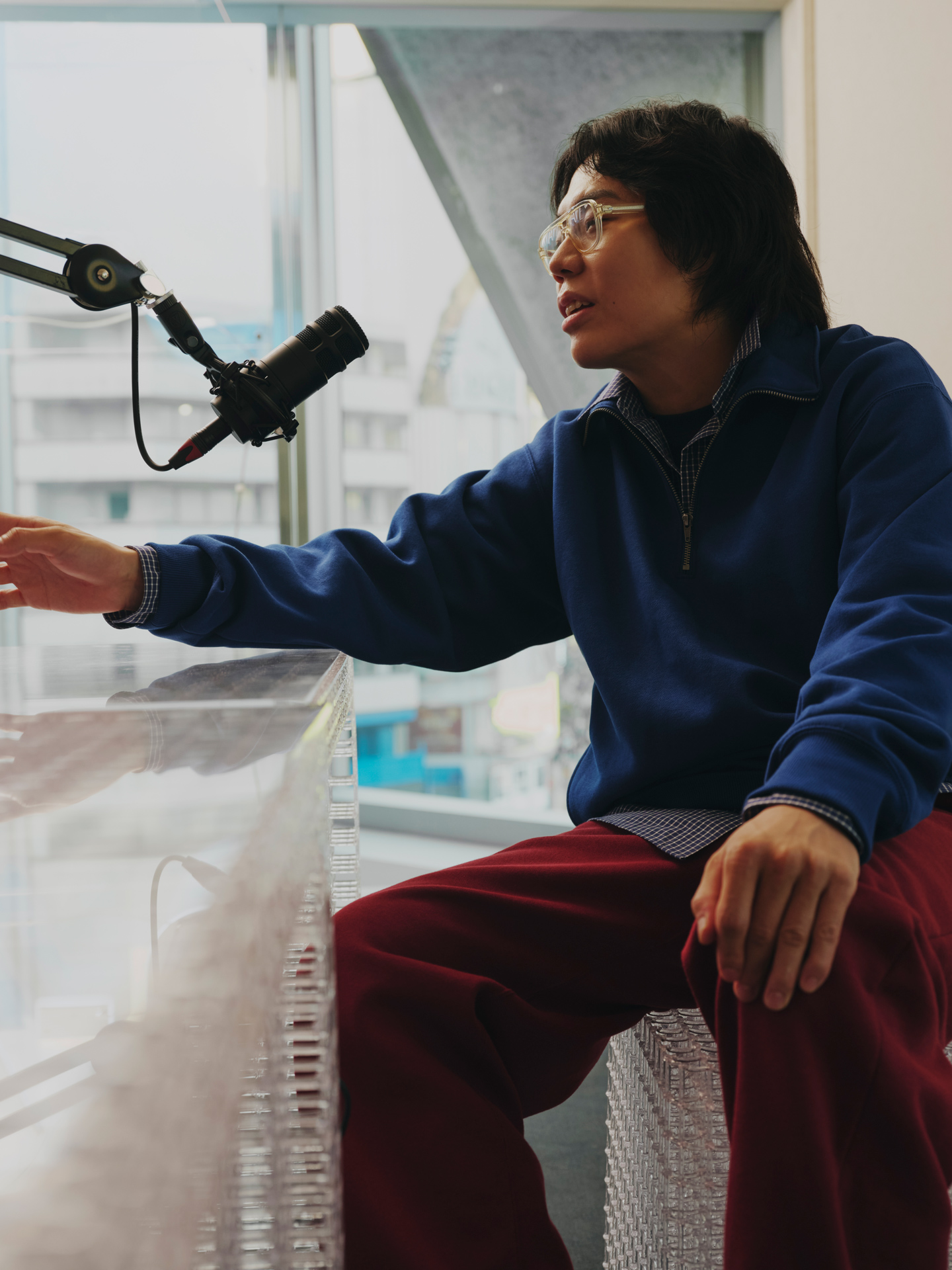 夕方、ラジオ収録のためにスタジオへ。視線の先にはマイク、耳元には街の喧騒。すこし緊張しながらも、ゆったりとした着心地の「パフスウェット」がそっと背中を押してくれる。笑いとひらめきを日々のなかに散りばめながら、自分らしいリズムで歩いていく。そんな彼の“何気ないけどかけがえのない1日”に、GU のスウェットがそっと寄り添う。