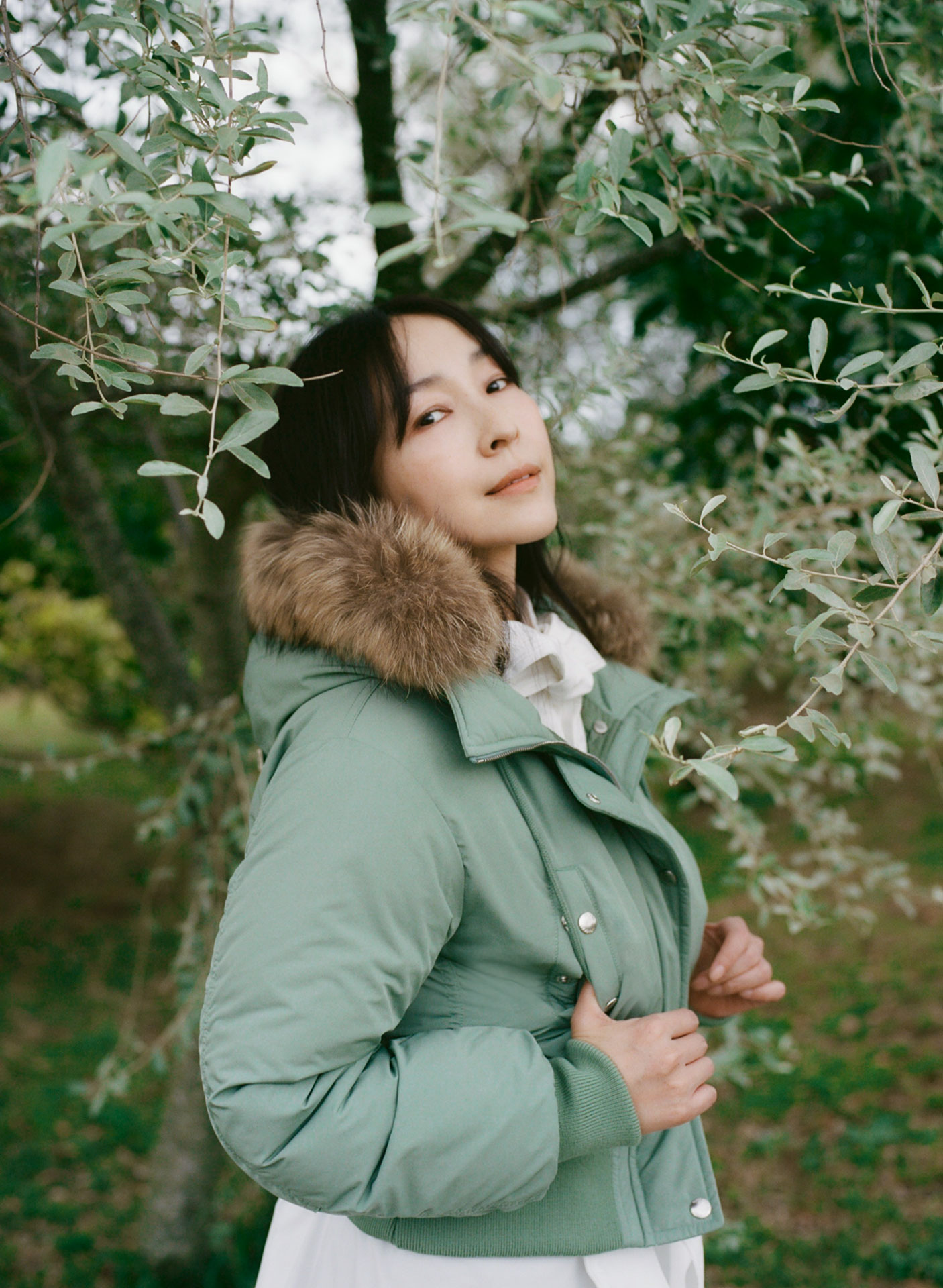 TATRAS のアウターを羽織り、都会の喧騒から一歩飛び出したのは、シリアスからコメディーまで幅広い役を自在に演じ、観るものを惹きつけてやまない俳優の麻生久美子。幼い頃から自然と触れ合ってきたという彼女の佇まいには、どんな瞬間でも自分らしくいれる余裕と、周囲の空気を穏やかに包み込む魅力がある。そんな彼女の息づかいと TATRAS が描く美学が、開放的な空間の中で静かに響き合う (第2回/全4回)。