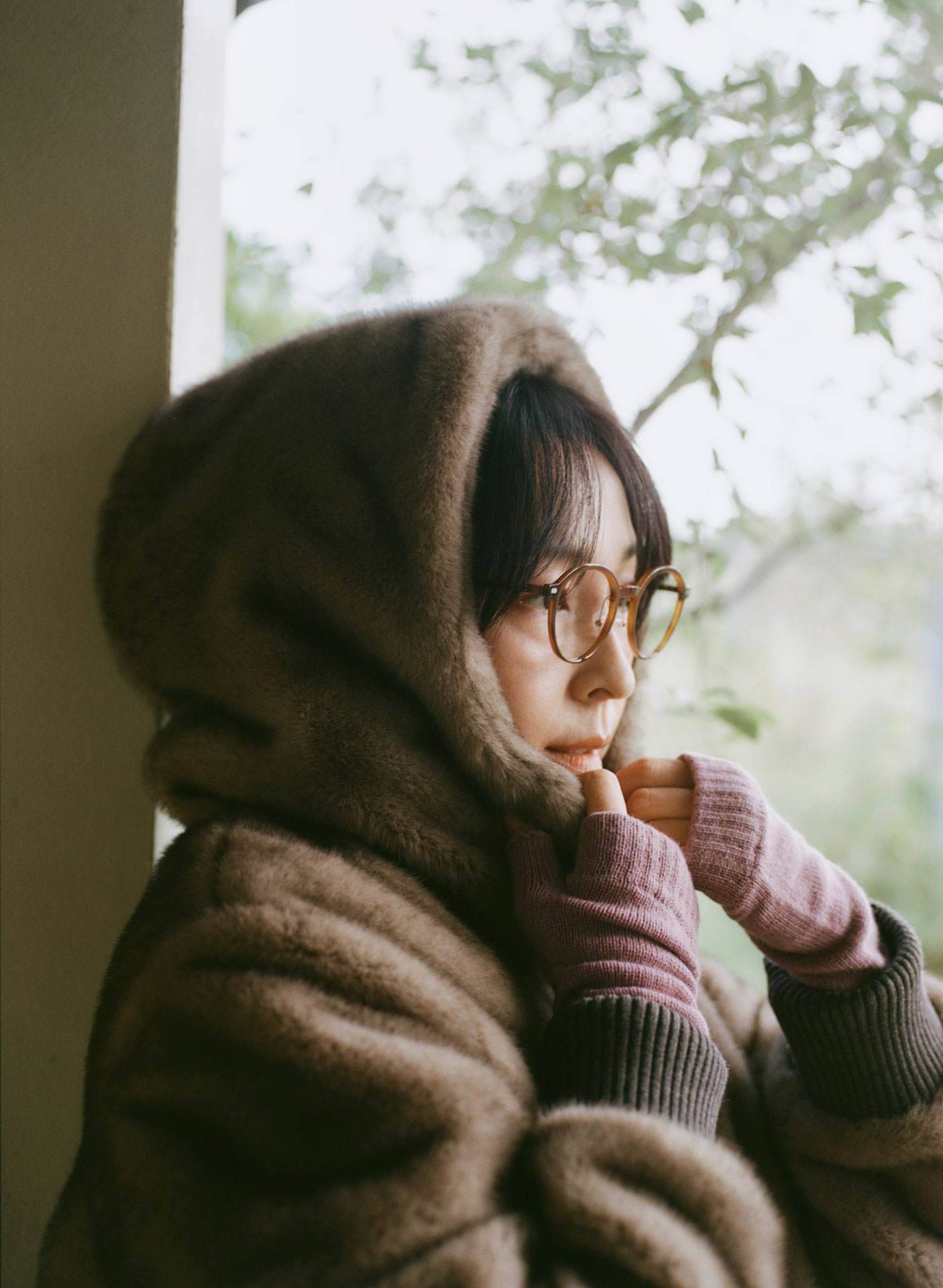 今回、麻生が纏ったのは、ブラウンの「ARABIS (アラビス)」フーディー。ハリのあるミンク調 ECO ファーの毛先にわずかな濃淡を施し、光の角度によって微細に表情を変える奥行きのある質感が魅力だ。触れるたびに、本物のファーのような柔らかさと上質さを実感できる。