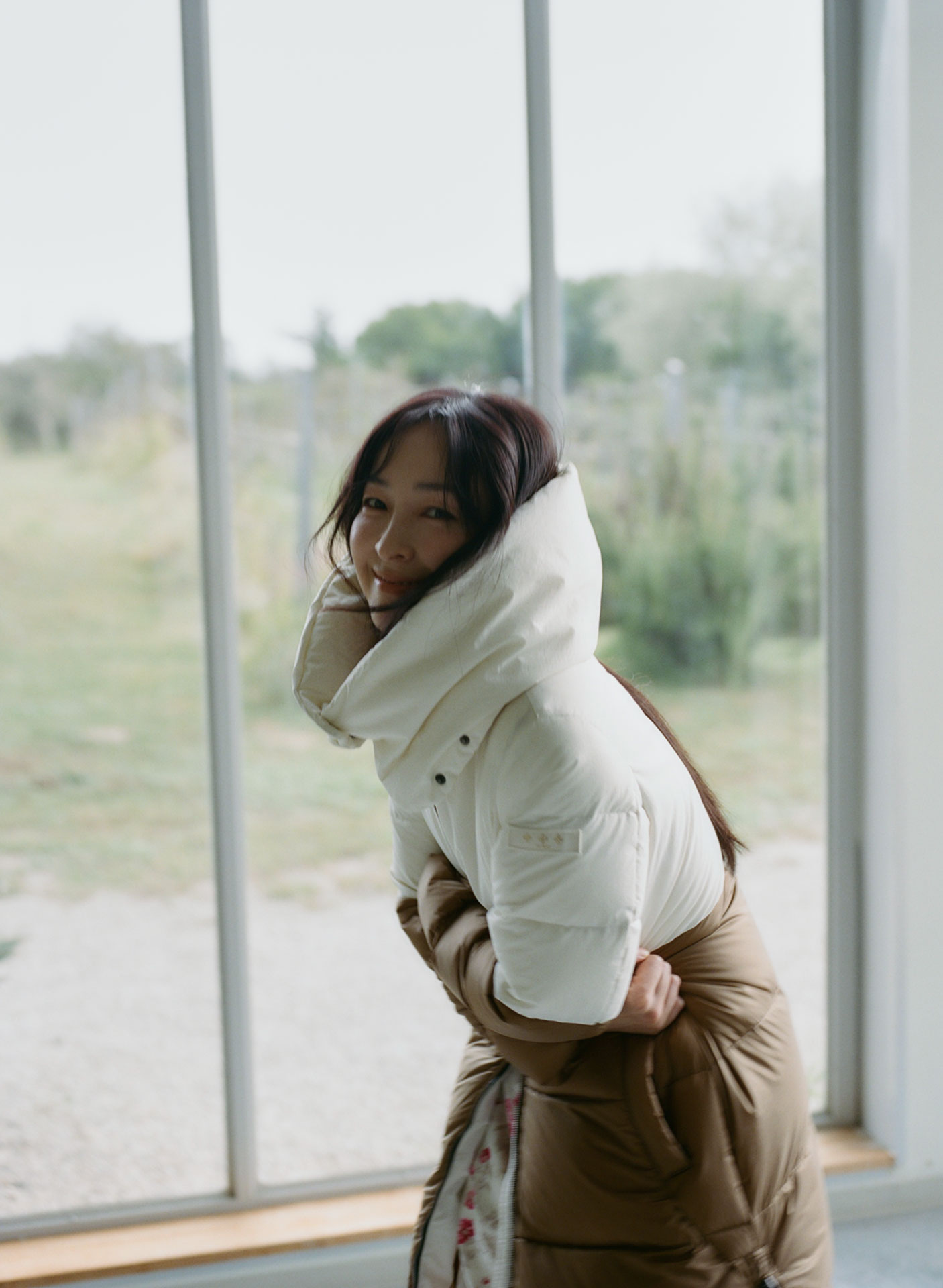TATRAS のアウターを羽織り、都会の喧騒から一歩飛び出したのは、シリアスからコメディーまで幅広い役を自在に演じ、観るものを惹きつけてやまない俳優の麻生久美子。幼い頃から自然と触れ合ってきたという彼女の佇まいには、どんな瞬間でも自分らしくいれる余裕と、周囲の空気を穏やかに包み込む魅力がある。そんな彼女の息づかいと TATRAS が描く美学が、開放的な空間の中で静かに響き合う (最終回/全4回)。