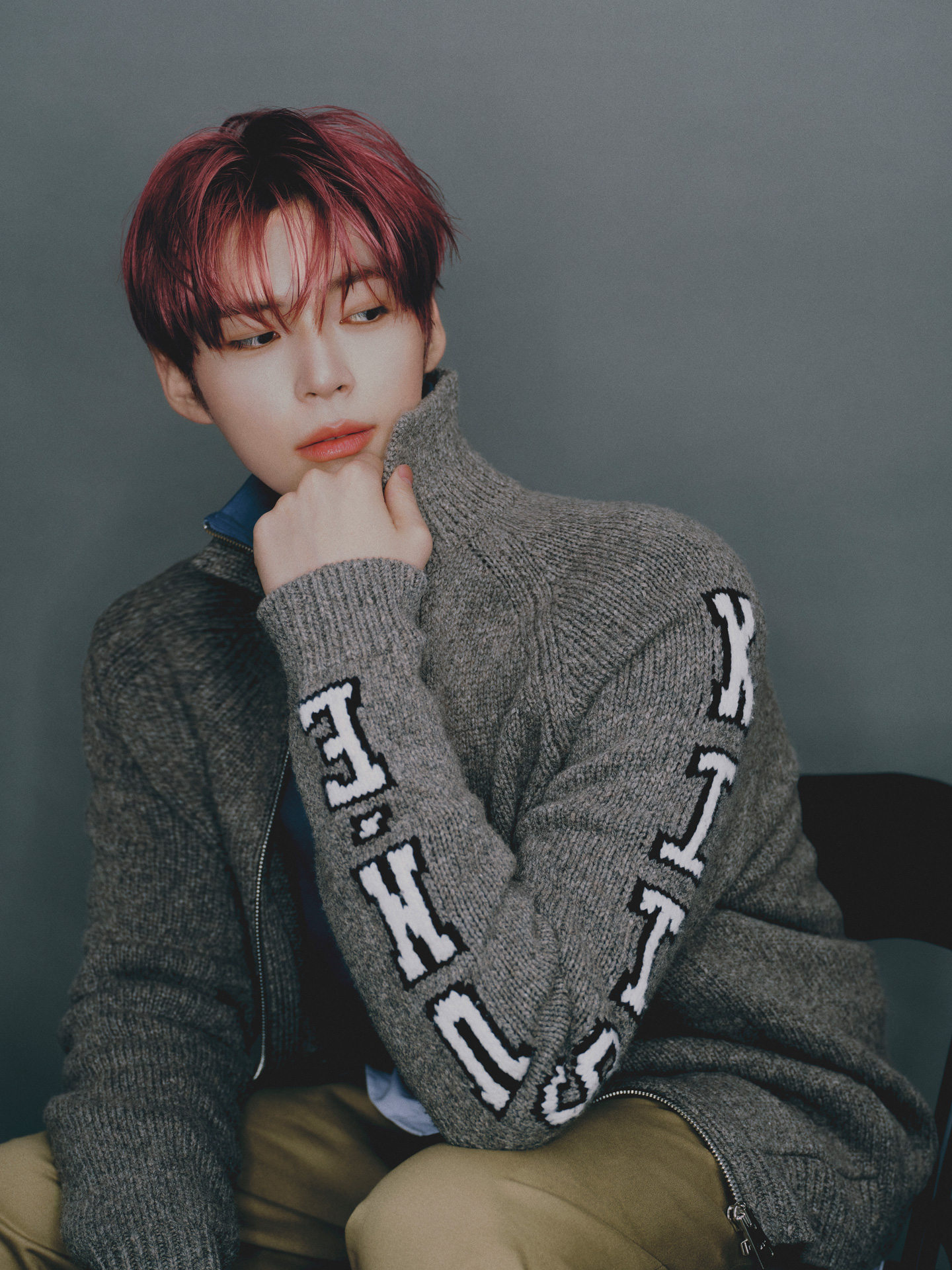 袖を通したのは、韓国のみならずグローバルで注目を集める ZEROBASEONE (ゼロベースワン) の SUNG HAN BIN (ソン・ハンビン)。冬の澄んだ空気を彷彿とさせる透明感と揺るぎない意志を湛えるその佇まいが、クラシックとモダンが交差する Maison Kitsuné の今を体現する。(第2回/全4回)