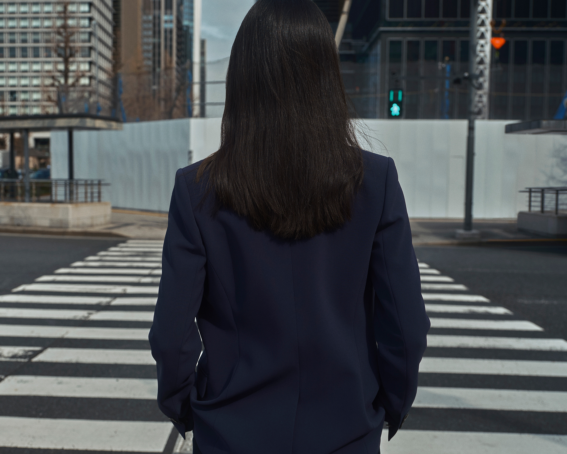 第1回に登場するのは、経営者であり、母であり、そしてひとりの表現者として常に自分を更新し続ける申真衣。彼女が Admiral Crepe に袖を通したとき、そこに浮かび上がるのはただ単にスタイルが良く見える服ではなく、圧倒的な存在感や説得力。今の自分を愛し、次なるステージへと自分を引き上げるためのワードローブ。Admiral Crepe を主役にした2つの趣向が異なるルックを通して、それぞれのスタイルを紐解いていく。